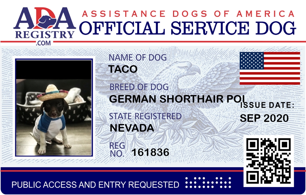 Service Dog Registration for Taco