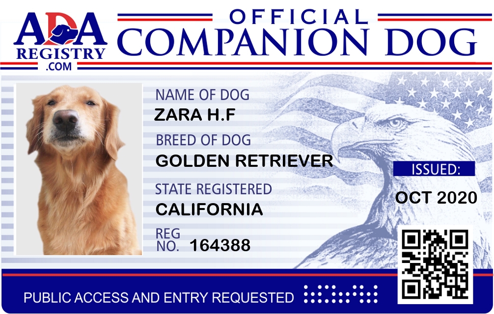 Service Dog Registration for Zara H.F