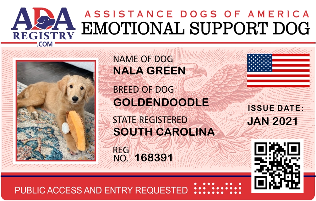 Emotional Support Dog Registration for Nala Green