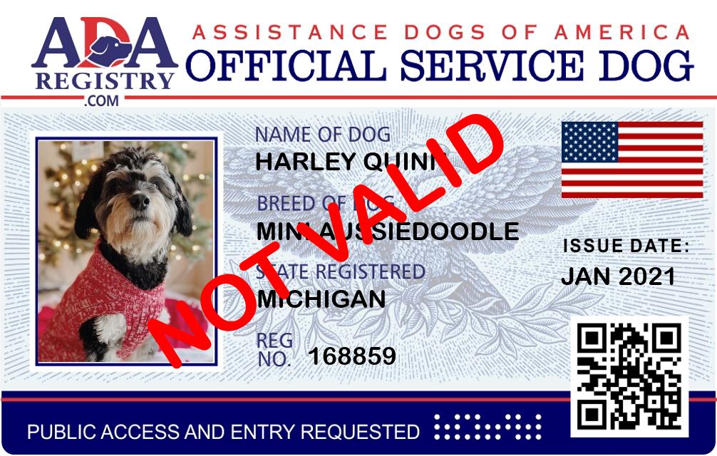 Service Dog Registration for Harley Quinn