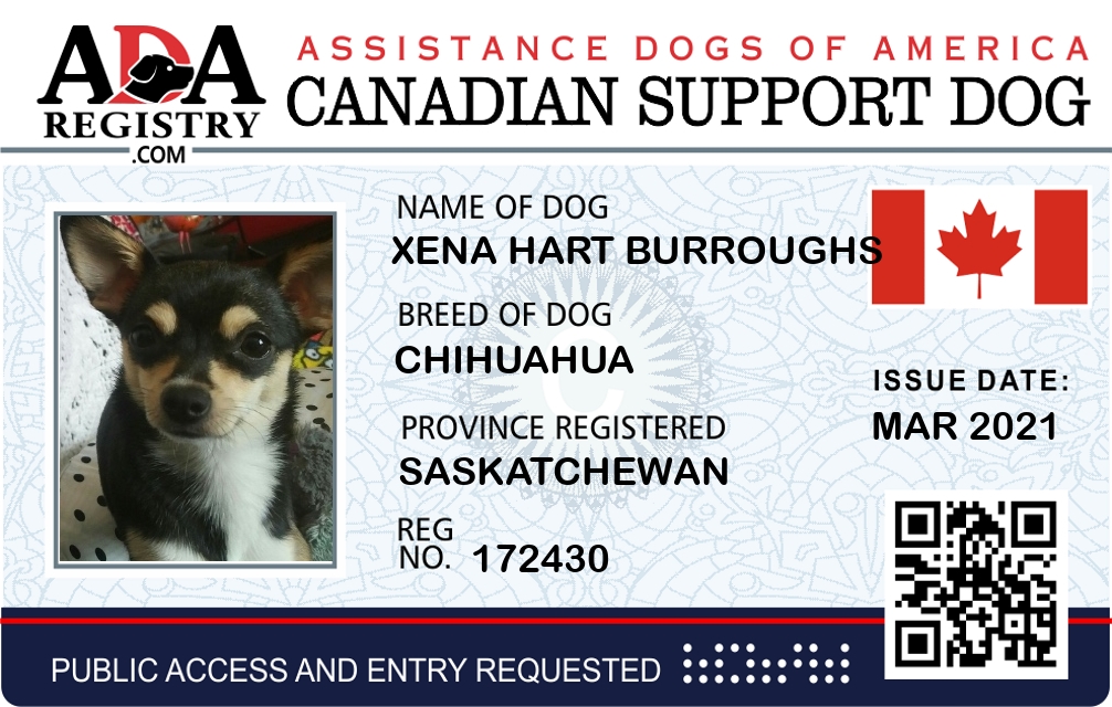 Emotional Support Dog Registration for Xena Hart Burroughs