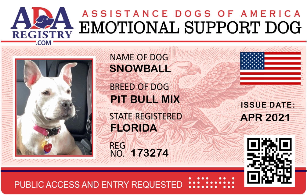 Emotional Support Dog Registration for Snowball