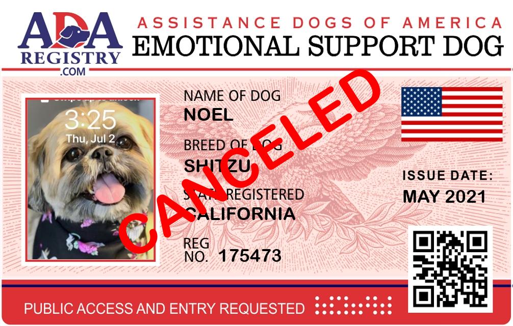 Emotional Support Dog Registration for Noel