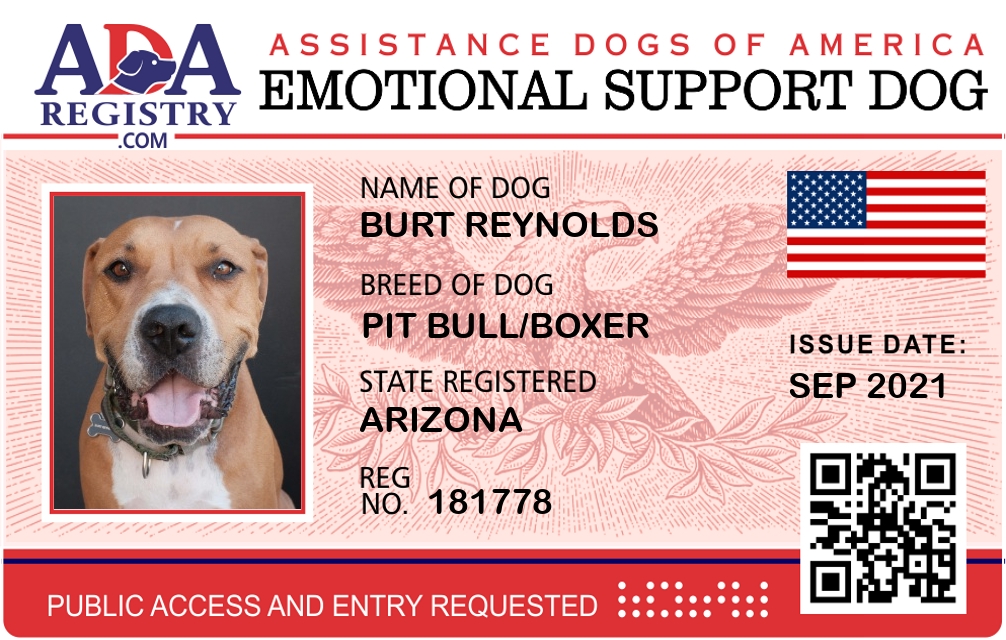 Emotional Support Dog Registration for Burt Reynolds