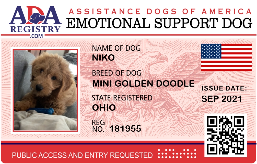 Emotional Support Dog Registration for Niko
