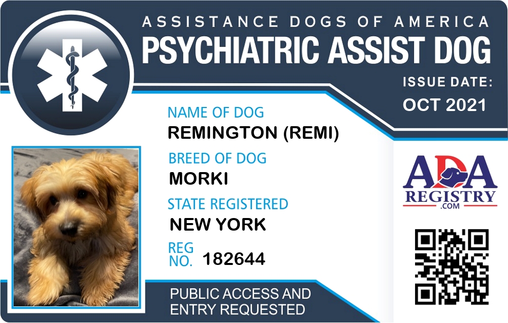 Psychiatric Service Dog Registration for Remington (Remi)
