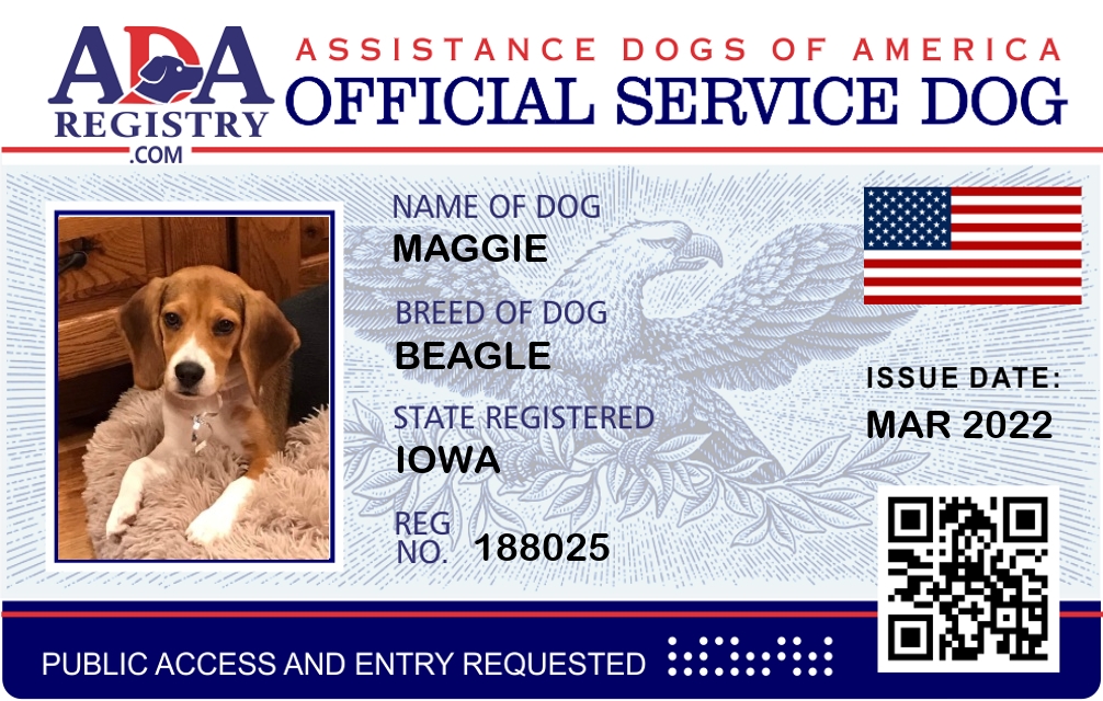 Service Dog Registration for Maggie