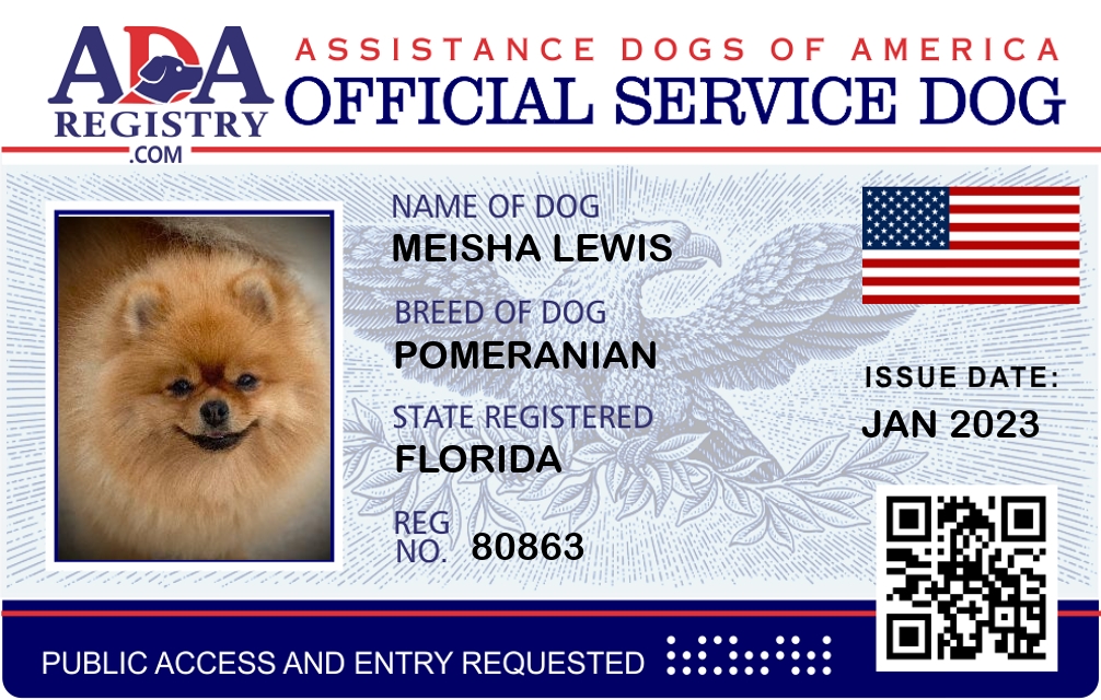 Emotional Support Dog Registration for Meisha Lewis