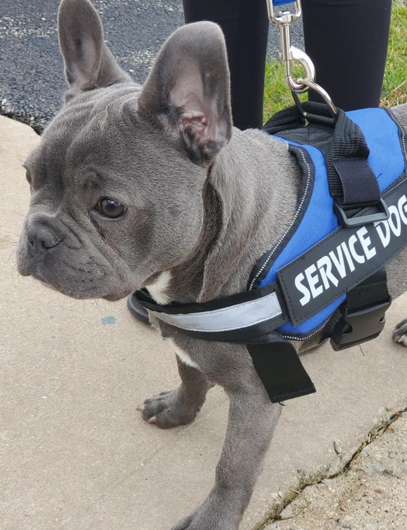 Archie standing proud with his service dog vest on. Definitely knows he is special and very proud to be helpful to his family.