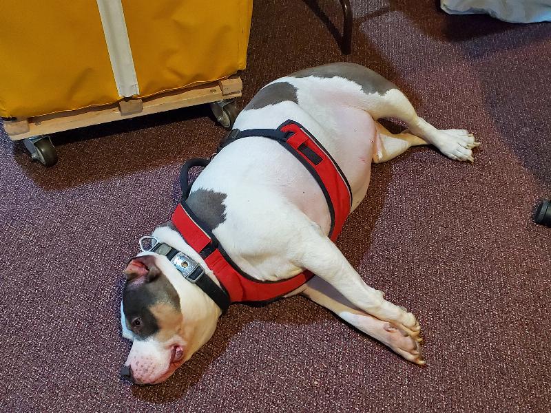 I’m at work with Mom. My job is so hard. I make sure she is ok, but sometimes I just need a nap. I love being able to go everywhere with Mom. My job is to sense when Mom needs me, alert Mom, create space for Mom, and help her to focus and feel safe during her attacks. My job is very important. I love my mom so much, and she loves me just as much.