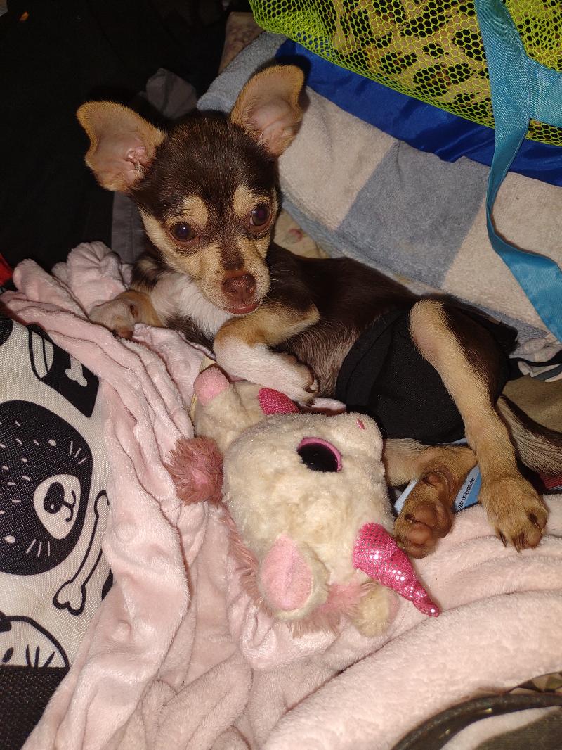 Tlc ehu is full of spunck, she is shitzu,chiuaua, terrier,weener dog and cattle dox mix. She pulled the smaller breeed size she is 2 lbs and a momma’s girl. She is priceless to me!!