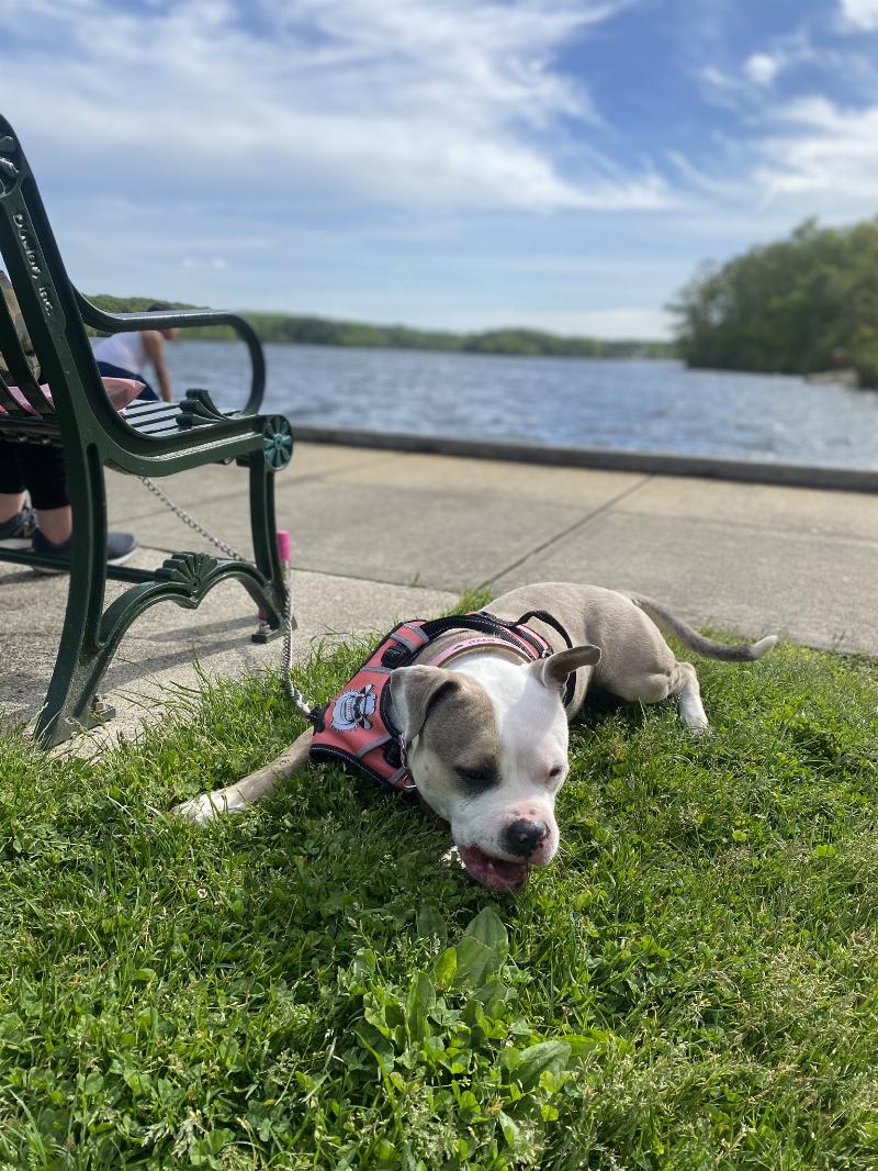 She loves going on beach walks and laying by the water. Can’t wait for COVID to be over to do this with her again