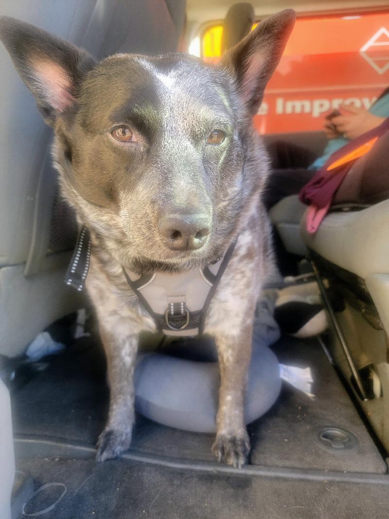 - She is a blue heeler and she is deaf. She is my service animal. She lives with me full time and sometimes I take her with me to stores.