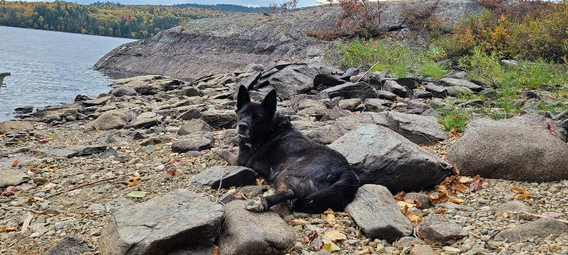 He is a dog on a beach. He sits know yhe beach and dreams of food. Food is his life. He also is a great working companion dog. I love this dog.