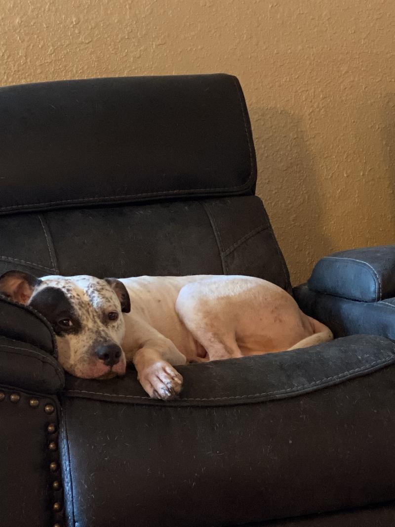 Brutus behaving himself and being cute on top of that at four years old can’t wait for him to get a bed so I can have no hair on my couches lol