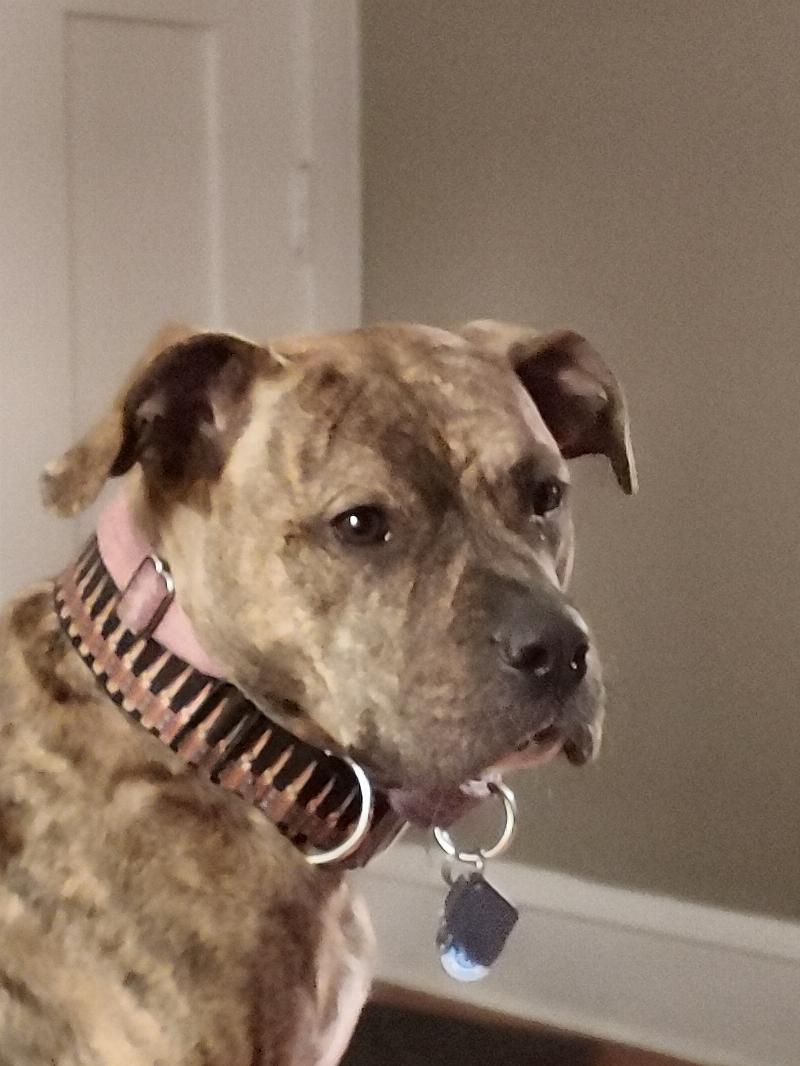 Bindi is the most sweetest loving dog in the world . I got her she was 1 yr old and was a rescue. She has come a long was and is so helpful to me I love her ever so much . She is a bed hog though.