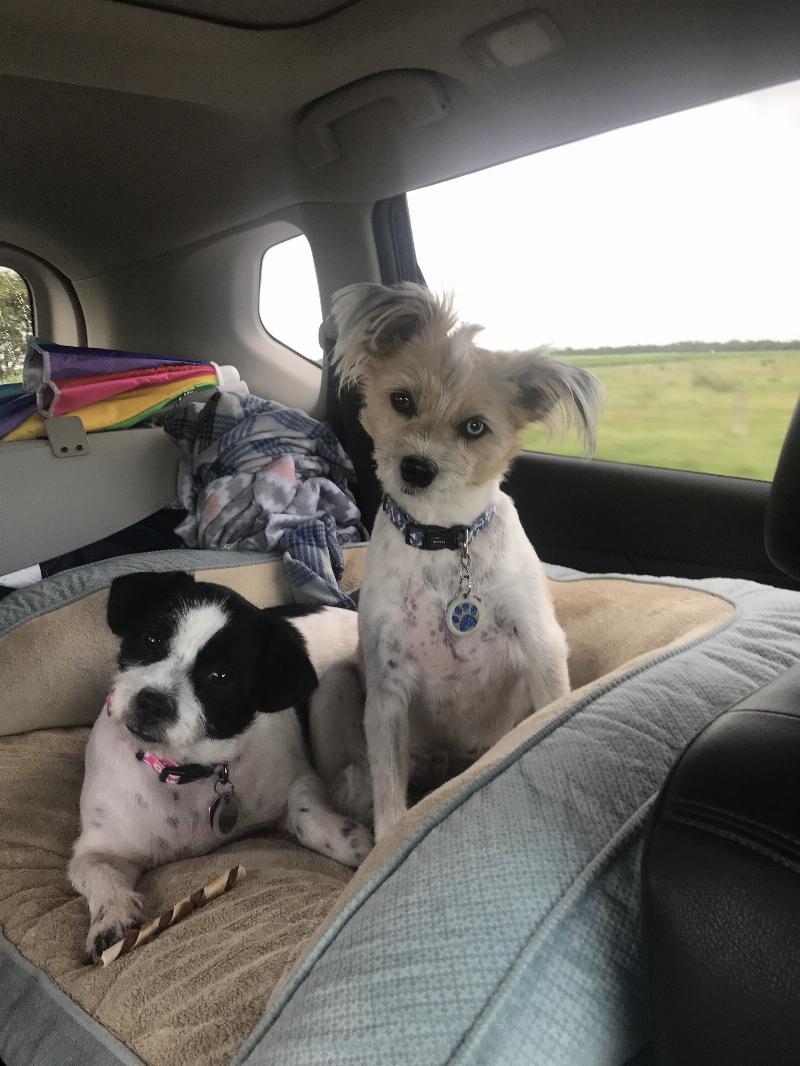 They are always with me! I think we make a great team of support for each other. They sleep with me eat with me and even escort me to the restroom, even when I don’t want them too… they’re my angels