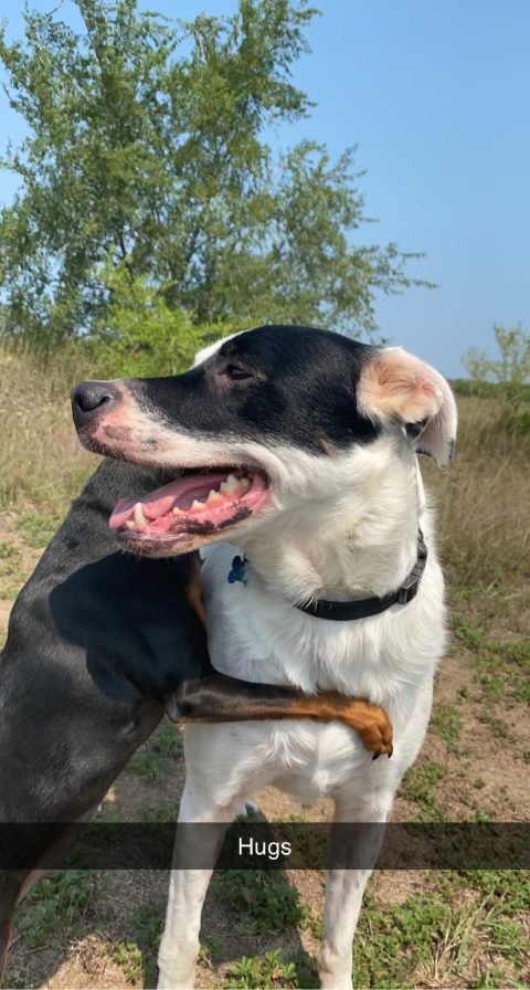 Dozer is a gentle giant which shows with his brother Gronk, a Miniature Pinscher. At 75lbs, he is always very delicate with his 15lb brother.