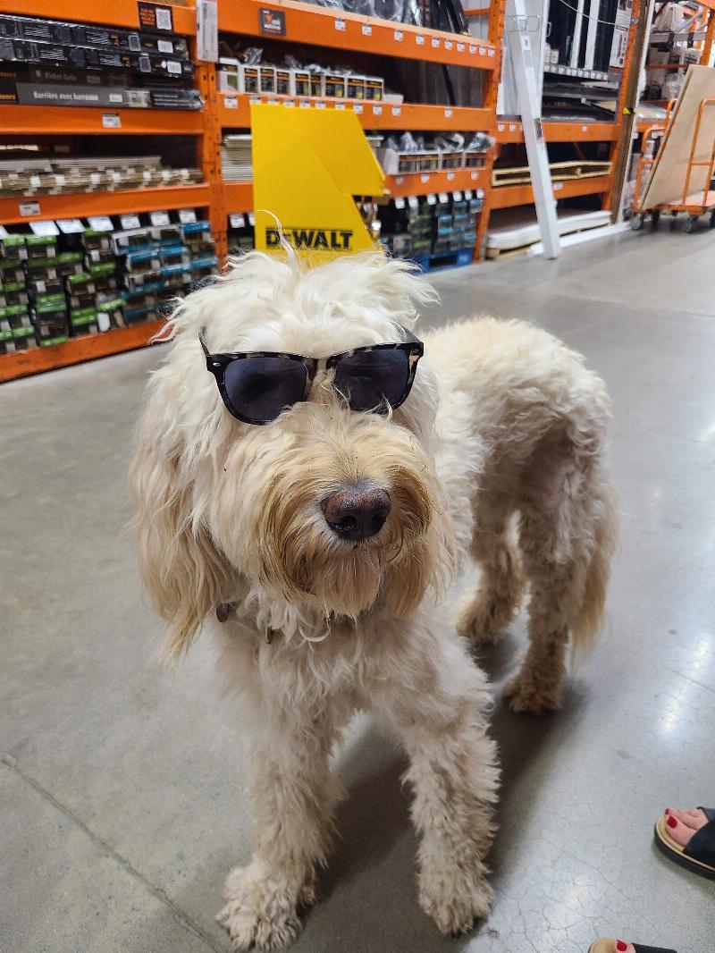 We were shopping at Home Depot and one of the employees thought Buddy would look cool wearing his glasses