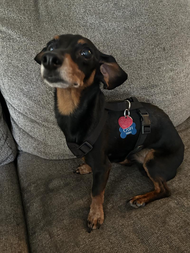 Cash taking a pic for the camera. Sweet old man. Love him bunches. He loves braking and cuddling under the blankets. Love him