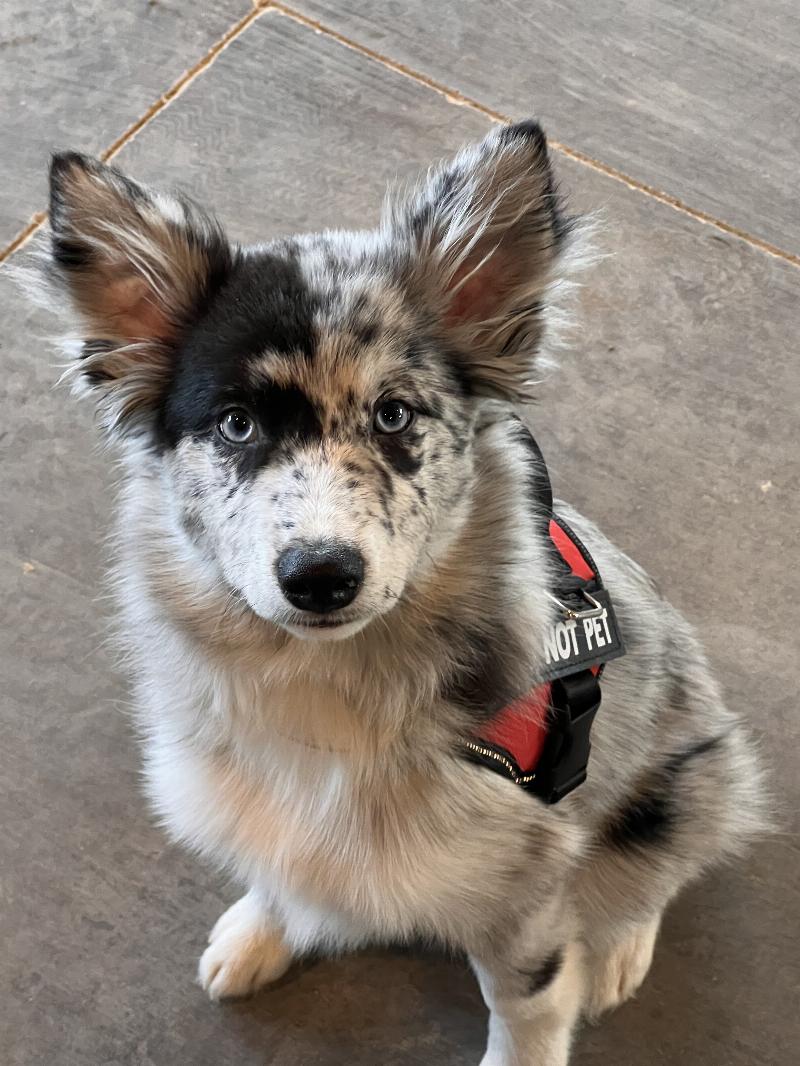 Nova is for seizures and emotional support. She has saved me several times. She is a great dog. She is sitting on her blanket she likes to dig on.