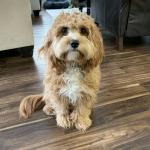 Griffin is a blonde cockapoo that weighs approx 18 lbs. Born in Dec. 5, 2014. Distinctive command is “wave” with a paw up in the air