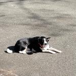Relaxing after playing ball/fetch, her favorite play time thing to do. Only thing that she loves to play more is ball/fetch in the lake!
