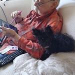 My husband suffers from Anoxia (brain injury). Tux calms him when needed and plays with him to energize him. I am lucky to have them both in my life!