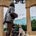 Yori is at Centennial Olympic Park in Atlanta, Georgia. This picture shows no matter how far I am back, she knows sit command until other wise told.