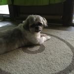Just chillin with her hedgehog after a day at the groomers. Kneesa loves to go shopping with me,her sister ,Bailey always together, they make the greatest tag team.