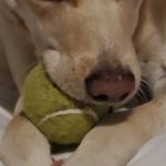 She is obsessed with tennis balls. Shes always got one in her mouth… even sleeps with one. Lol! She was layin around the house bein lazy this day because we jus got done with the park.