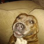 This is Dega standing on the couch. He likes to tilt his head when getting his picture taken. Talla is standing in the background.