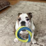 When I’m not helping mom, I love a frisbee or a ring to play tug with! I’m the strongest!! I also LOVE my nap time, especially with mom!