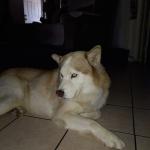 Husky akita wolf mix very calm and great family dog helps me relax when my anxiety from my accident overwhelms me..