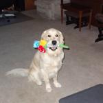 After playing ball in the sun, it feels good to just stretch out on the bench at the picnic table. I love to hold my ball with my paws. Mom and Dad say I have hands….lol.
