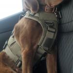 This is Attie in her new vest. I traded in her traditional service vest for a tactical one. She has a leash to match. We love new products.
