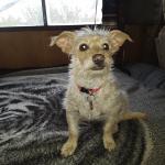 Traveling in the RV Luther always sits on the couch with his feet on the floor. He travels everywhere with us.