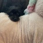 She loves to share the unicorn stuffed animal. She is peeking out to make sure your sitting by her and not going to sit on her. So sweet and loving. Will bark at door to let you know you walked into her house.