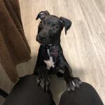 Calvin being so sweet and waiting patiently on the way to go shopping and out to eat with his mom. He is very kind but does scare people due to his breed, never has he ever been aggressive.
