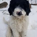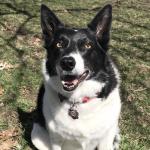 Color: black, white, brown undertones. White dot on head. Very sweet and shy, but very very smart. Well trained and focused. Loves to play with sticks and play fetch!
