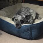 Marge thought she heard a noise, so she listened more closely with her perked up good ear (left) before she started the “I’m the watchdog Barking. (Marge’s right ear had been clipped from a severe unattended ear infection before I adopted her, but this makes her all the more adorable)