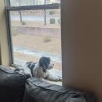 Here is Bette, in her normal daily basking spot. On this day it snowed!