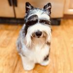 Einstein is a loving funny and energetic 1 1/2 yr old mini schnauzer. He is a white and black Merle color and has one left blue eye. He is very calming and will cuddle at anytime and place..