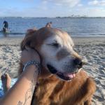 This is Jamie and I at our favorite place, the beach! Every dog, person, fish, etc. that passes is met with nothing but love from sweet Jamie.