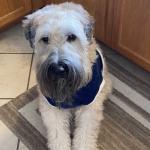 Winston is a soft coated Wheaton Terrier who came to me to help. He is a loving dog that services my needs. He is very loyal and knows when I need him.