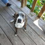 My dog likes to sit on the porch with me while I drink my coffee in the morning. He is a big helper and serves as emotional support mostly for my special needs son. But if my kids are asleep then he will come hangout with me.