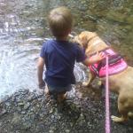 Anna Bell and Baby T doing their thing during a camping trip!! She loves to help him walk along the creek banks and wade in the shallow waters.