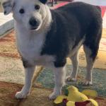 Ruby after her vet appointment with new toy ? ? ? ? Ruby loves toys that squeak and are small. This toy is a bit large for her, but it was a big hit.