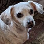 This is a current photo 2021 of Daisy, part Weiner dog part Chihuahua. She’s 8 years of age and makes my life a bit more tolerable!