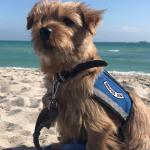 Jack posing with his service dog credentials at the beach with the wind blowing in his beautiful face. He had a great time.